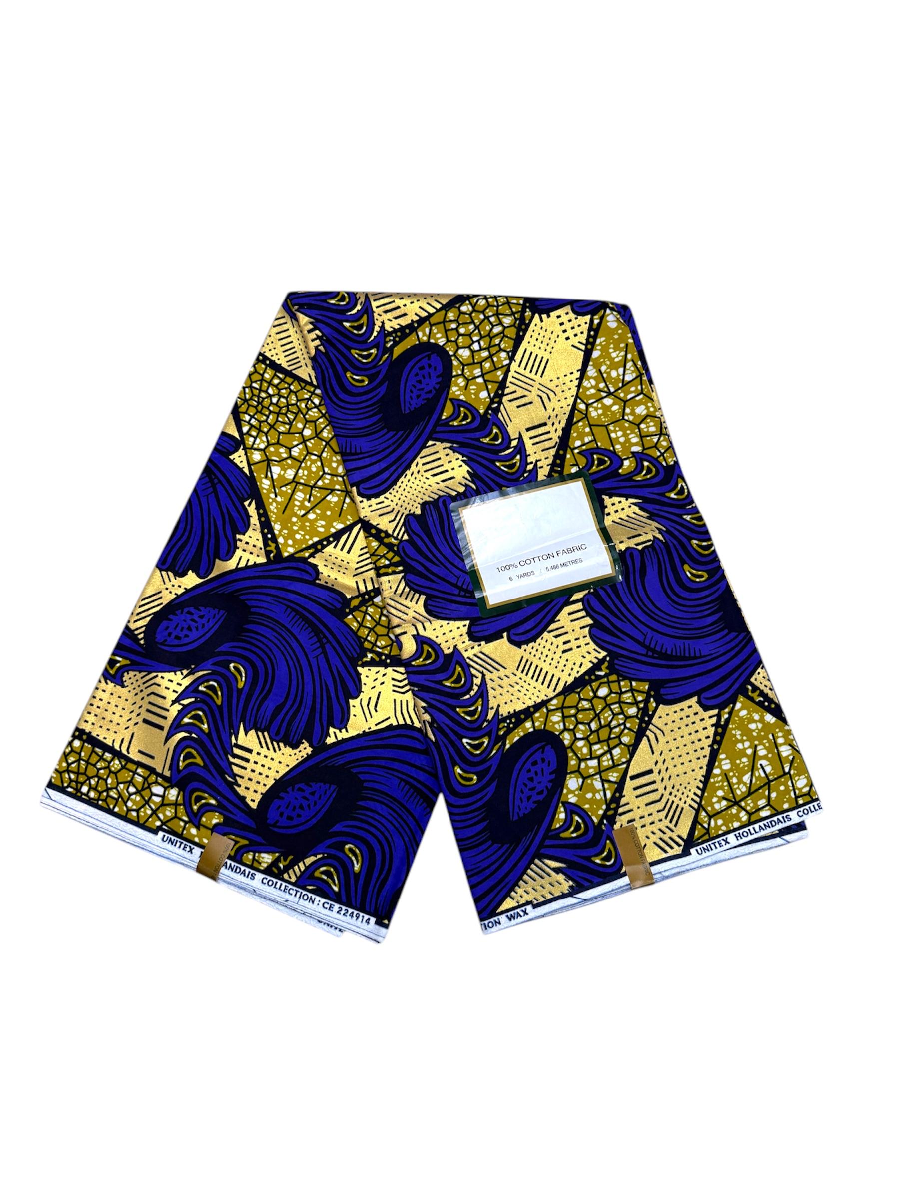 Avec unitex hollandais, plongez dans l’univers raffiné du wax hollandais haut de gamme. Ce tissu à l’esthétique puissante marie avec finesse un bleu indigo profond et des touches dorées, évoquant à la fois la créativité artistique et l’élégance impériale. Les formes abstraites et les effets mosaïques créent un mouvement visuel captivant, idéal pour des robes, vestes, ou ensembles uniques. Résistant et confortable, Majesté Indigo s’impose comme le choix parfait pour celles et ceux qui veulent affirmer leur style avec sophistication.